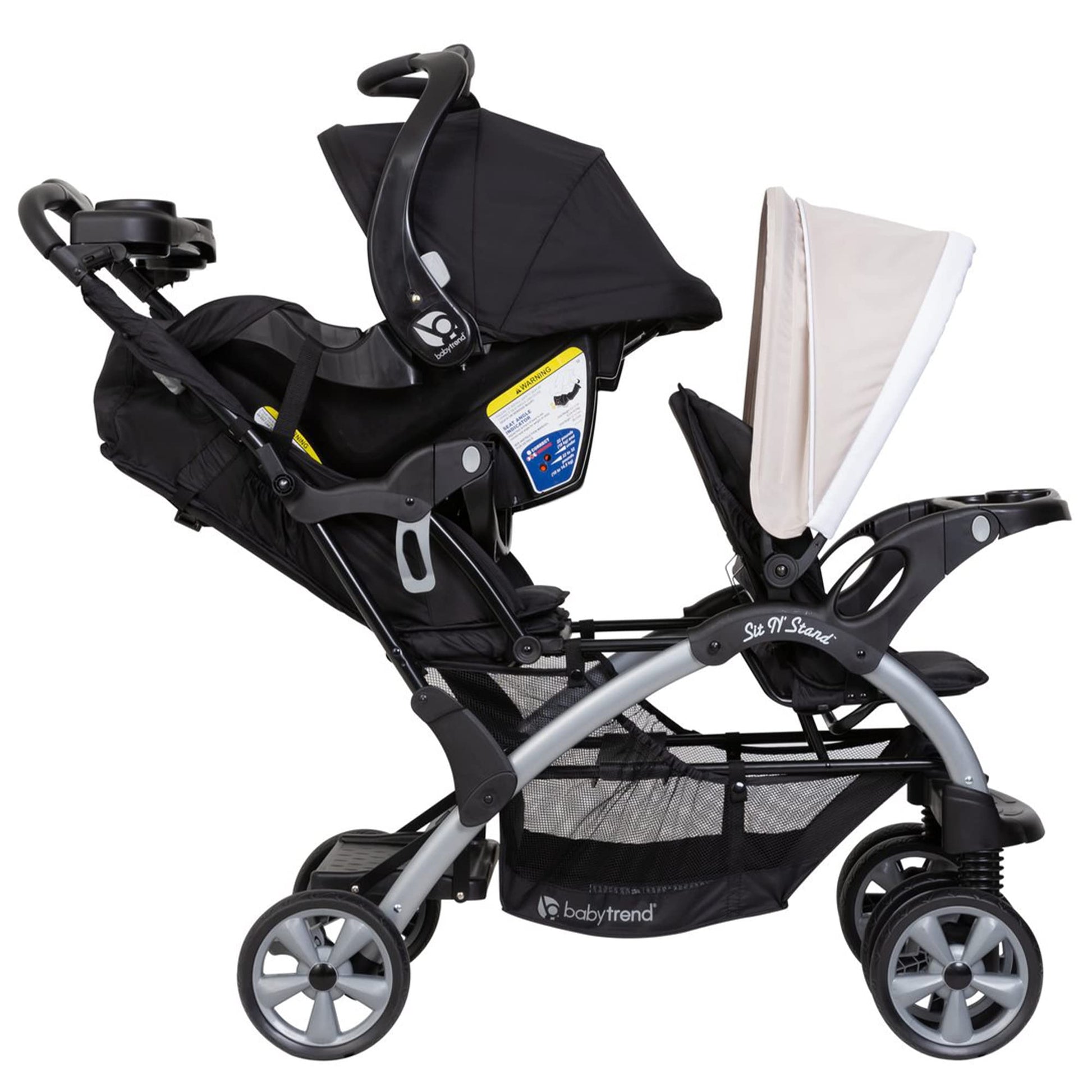 - Travel System Compatability: A tandem stroller's front and rear seats can accept up to 2 infant car seats and are compatible with the included Baby Trend Infant Car Seats to conveniently use together or apart