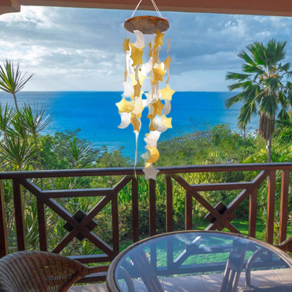 - VERSATILE DECOR ACCENT: Enhance the ambiance of any environment with our versatile capiz shell wind chimes. Hang them on your porch, patio, balcony, or in any indoor space to add a touch of coastal charm and sophistication. Whether as a standalone accent piece or as part of a larger decor arrangement, our chimes for outdoors make a stylish and enchanting addition to any setting.
