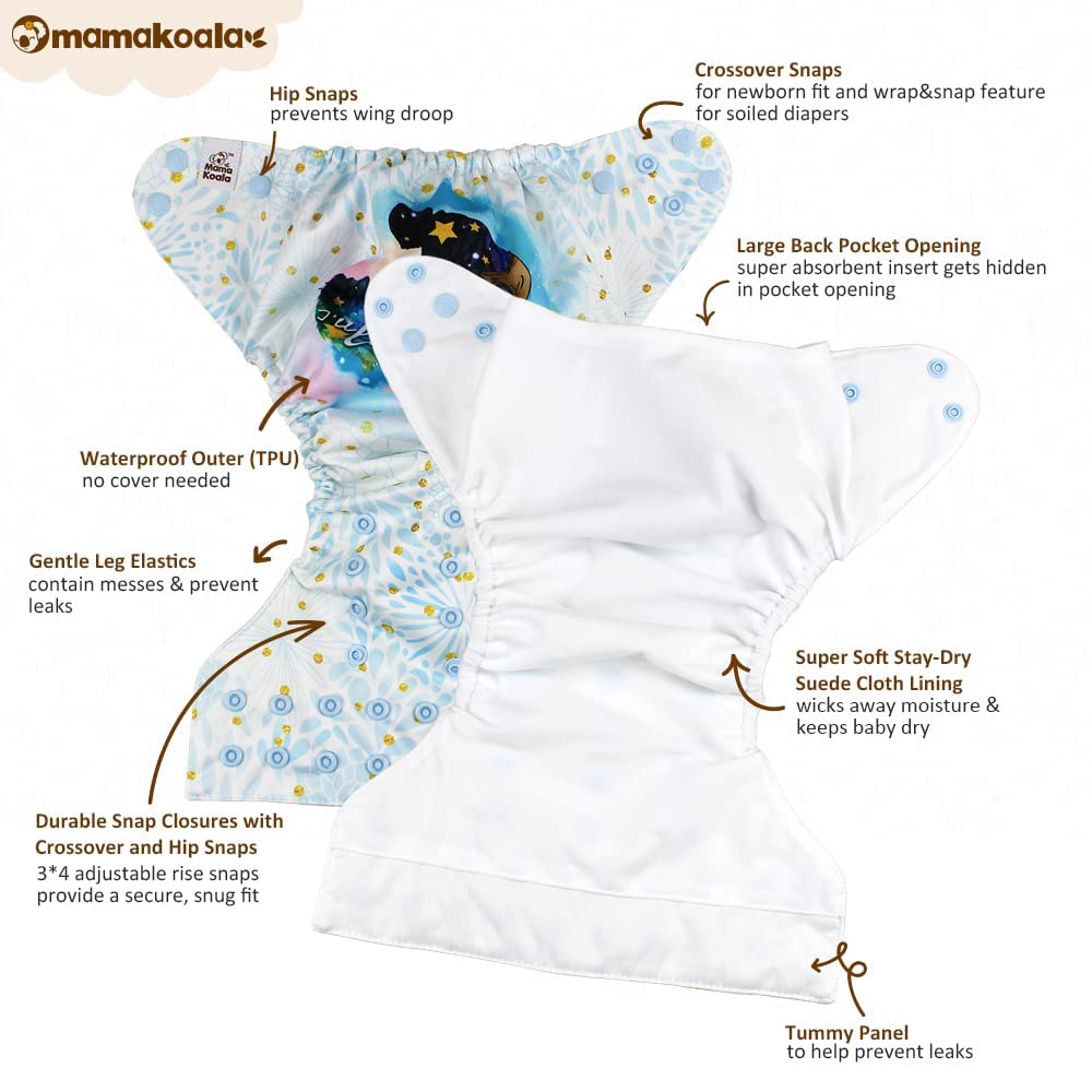 - SLIM FIT AND ANTI LEAK - Perfect fit with crossover snaps and hip snaps to avoid wing droop and keep the diaper in place. Snug leg openings and waterproof TPU cover ensure both breathability and leak prevention.
