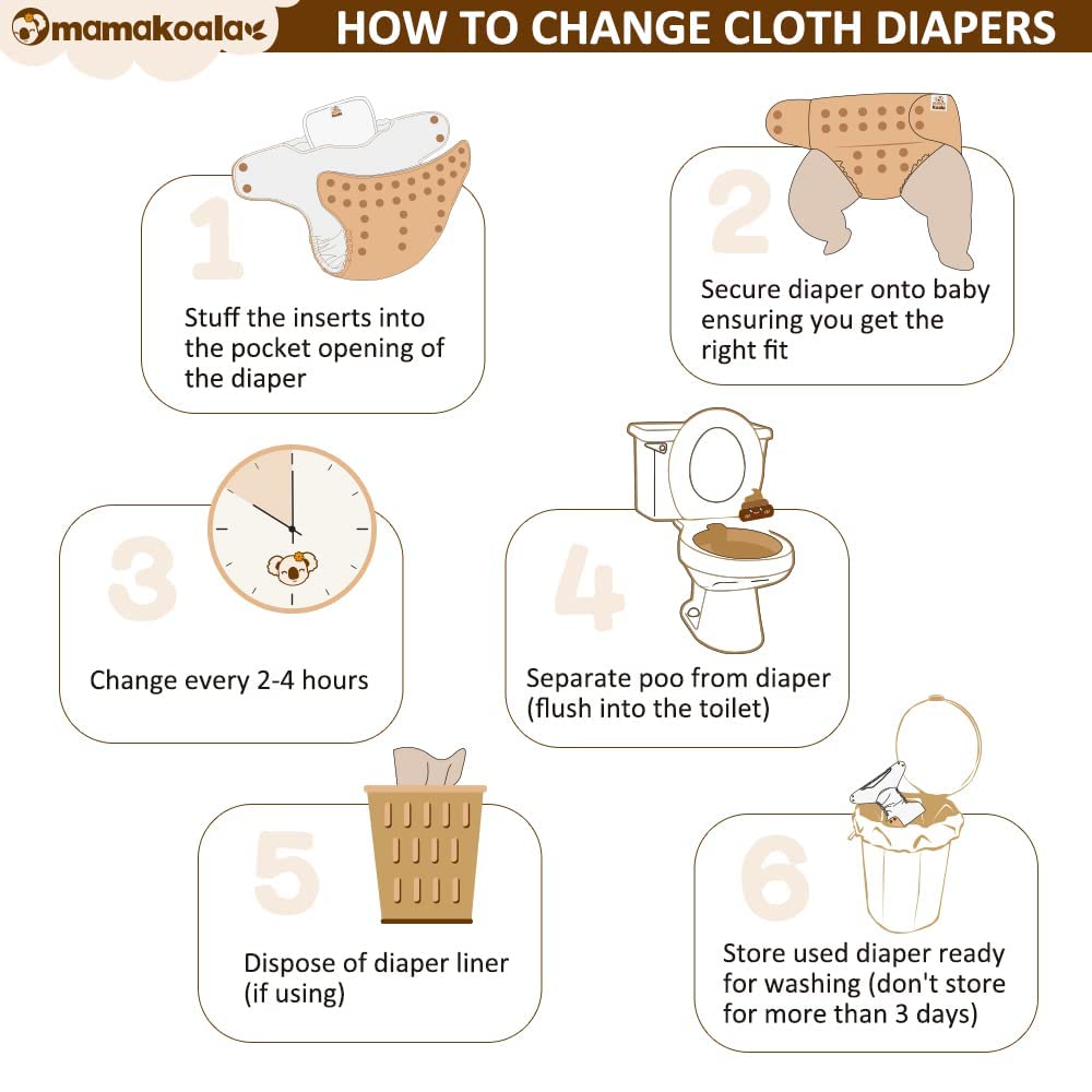 Mama Koala 2.0 Cloth Diapers for Babies with AWJ Lining, 6 Pack with 6 Bamboo Cloth Diaper Inserts - Reusable and Washable Pocket Diapers(Simply Neutrals)